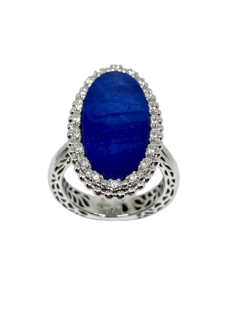 GIORGIO VISCONTI anello in oro bianco 18kt con diamanti di ct 0,19 complessivi e zaffiro di 1,00 ct circa: NUOVO scatola e garanzia ufficiale